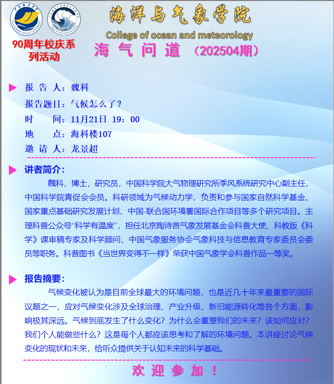 【学术报告通知】开元游戏 “海气问道”(202504期)