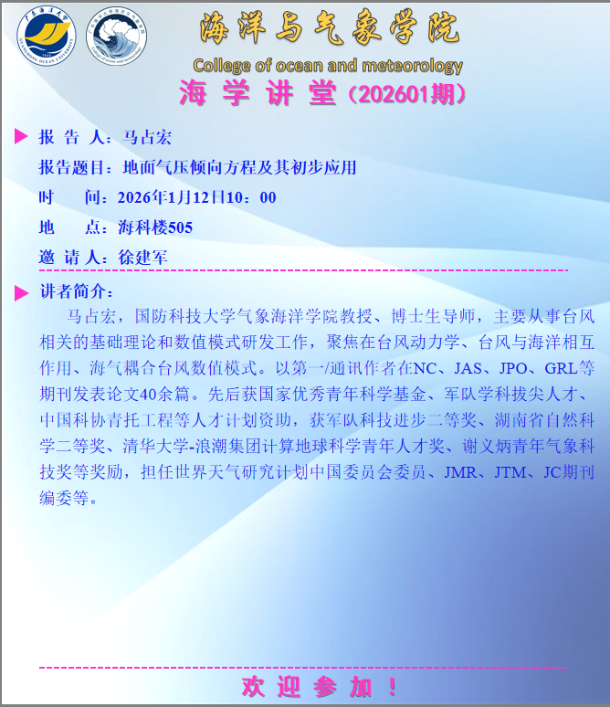 【学术会议通知】开元游戏 “海学讲堂”(202601期)