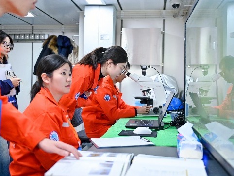 总决赛期间,代表队登上6000吨级“东方红3”科考船,与来自中国海洋大学、厦门大学、中山大学、河海大学等全国10支参赛队伍同台竞技。本次大赛涵盖物理海洋、海洋化学、海洋生物和海洋地质四大方向,设置甲板和船上实验室两个考核板块。甲板操作包括SBE911plus CTD观测及采水、化学水样现场分取、箱式采泥器表层沉积物取样、浮游生物垂直拖网以及海床基组装等5项内容;实验室内考核包括海水pH测定、浮游植物鉴定(种水平)、表层沉积物描述及船载观测仪器认知共4项内容。考核内容兼顾实践与理论,覆盖面广、工作量大、操作要求高,且需在5.5小时内完成全部项目;同时受当日4级海况影响,整体难度进一步加大。开元游戏