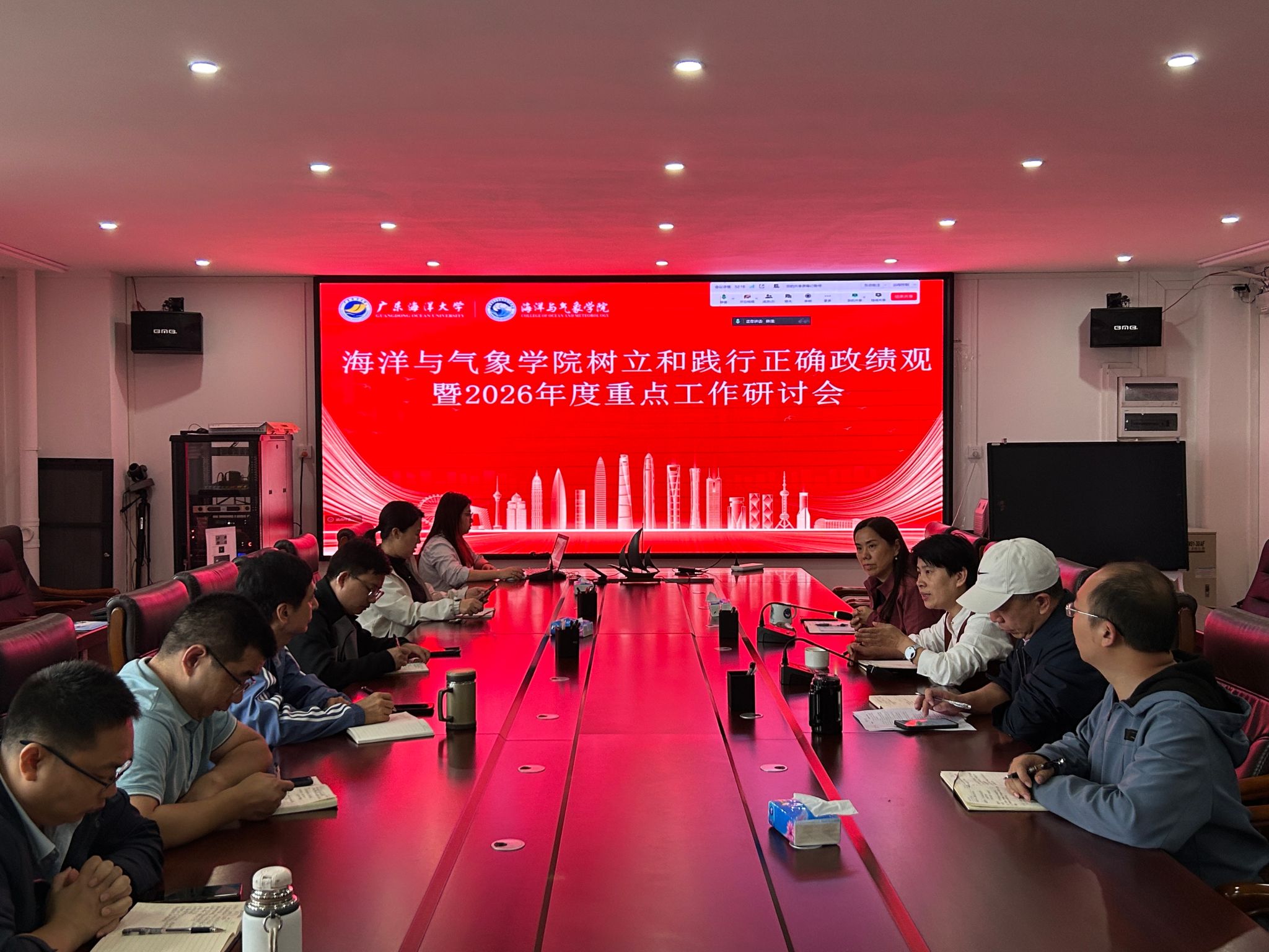 在海科楼505召开树立和践行正确政绩观暨2026年度重点工作研讨会。会议由谢玲玲院长主持,党委书记刘利群,副院长薛宇峰、侯庆华及各系主任现场参加会议,副院长郑少军线上参会。