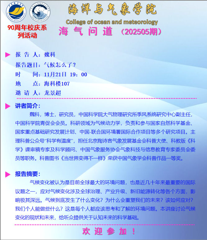 【学术报告通知】开元游戏 “海气问道”(202505期)