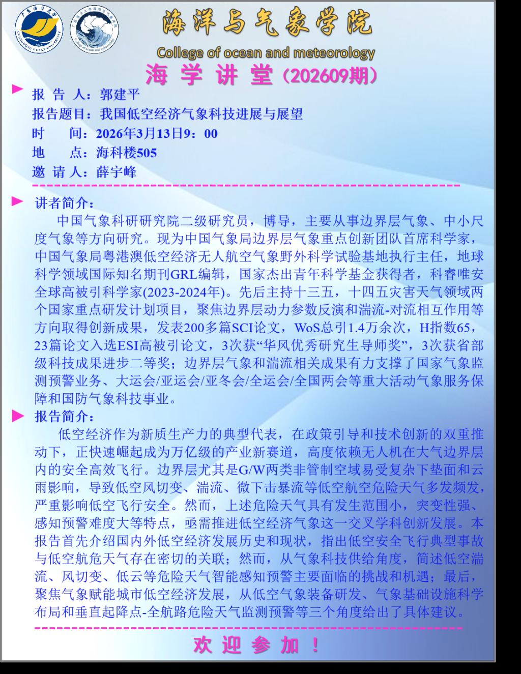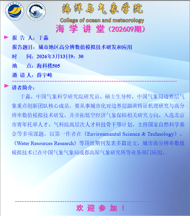 【学术会议通知】开元游戏 “海学讲堂”(202609期)