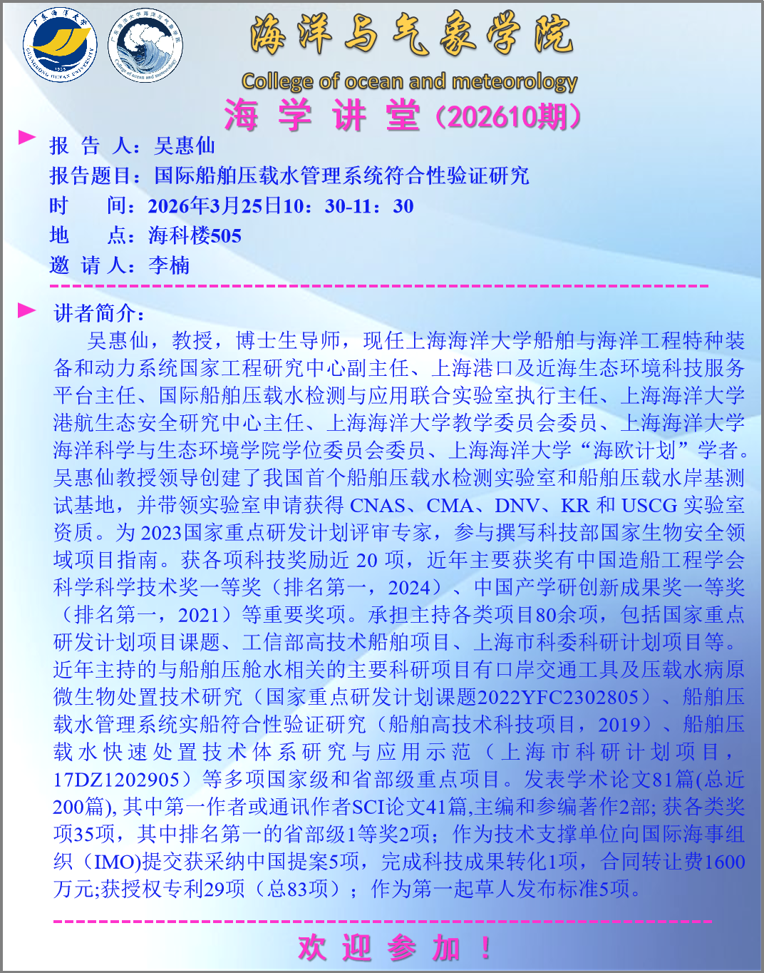 【学术会议通知】开元游戏 “海学讲堂”(202610期)