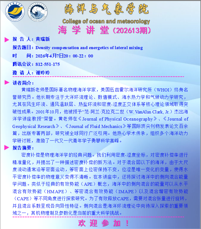 【学术会议通知】开元游戏 “海学讲堂”(202613期)